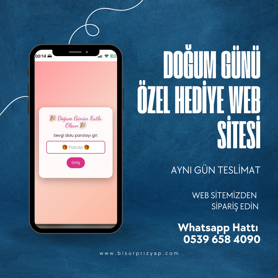 💝 Bu özel web sitesi hediyesi ile doğum gününü kutladığınız kişi her zaman açıp bakabileceği, duygusal ve kalıcı bir hatıraya sahip olur. Sürpriz etkisi, modern tasarımı ve kişiselleştirilebilir içeriğiyle doğum günlerinde mükemmel bir seçimdir.