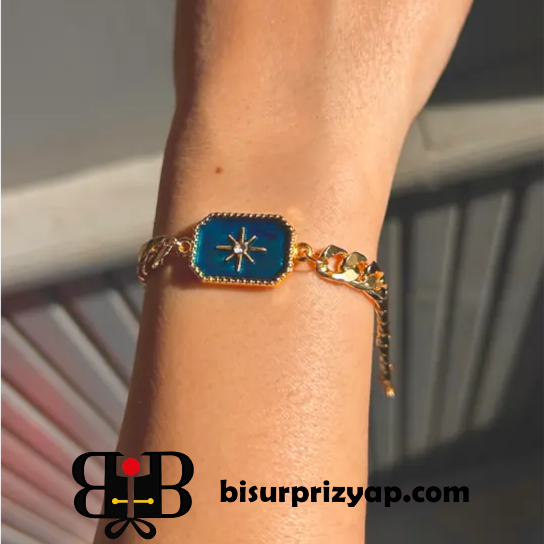 VIP Arpa Zincir Saks Mavi Kuzey Yıldızı Bileklik | Şık ve Modern Aksesuar